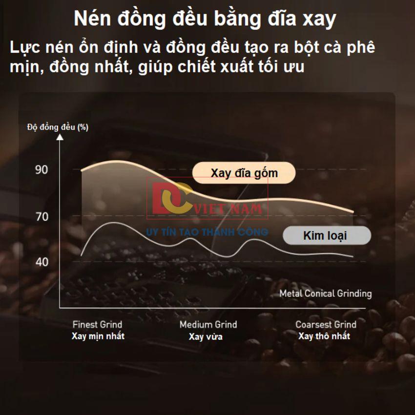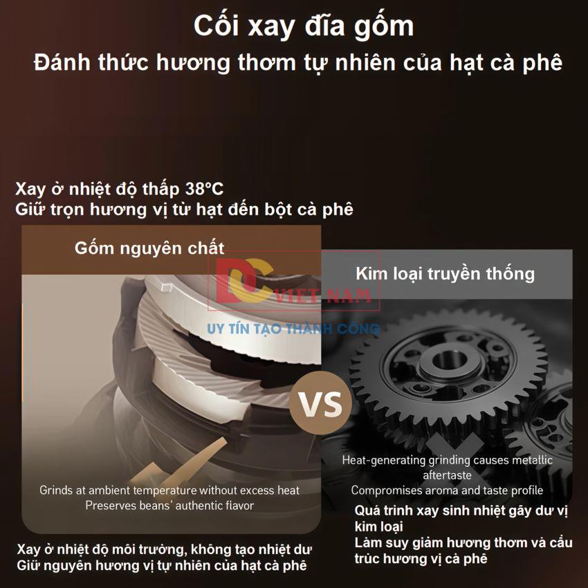 Máy được trang bị cối xay bằng gốm 100%, giúp giải phóng trọn vẹn hương thơm cà phê. Với 12 mức điều chỉnh độ xay, bạn có thể lựa chọn từ xay siêu mịn đến xay thô theo sở thích.