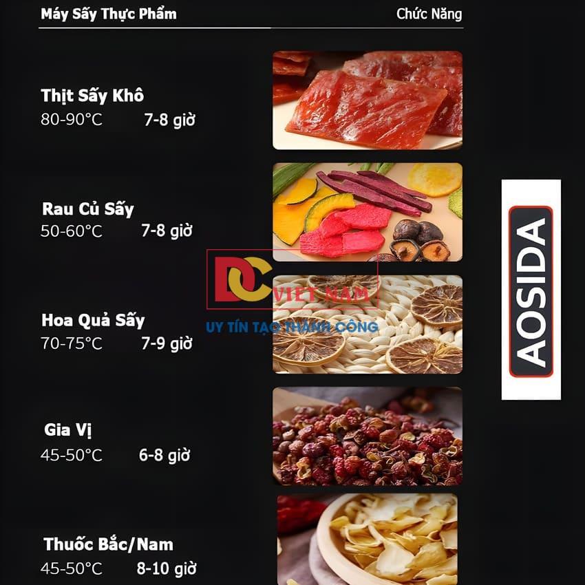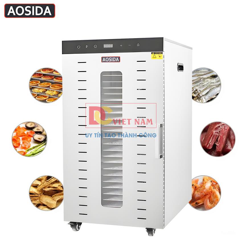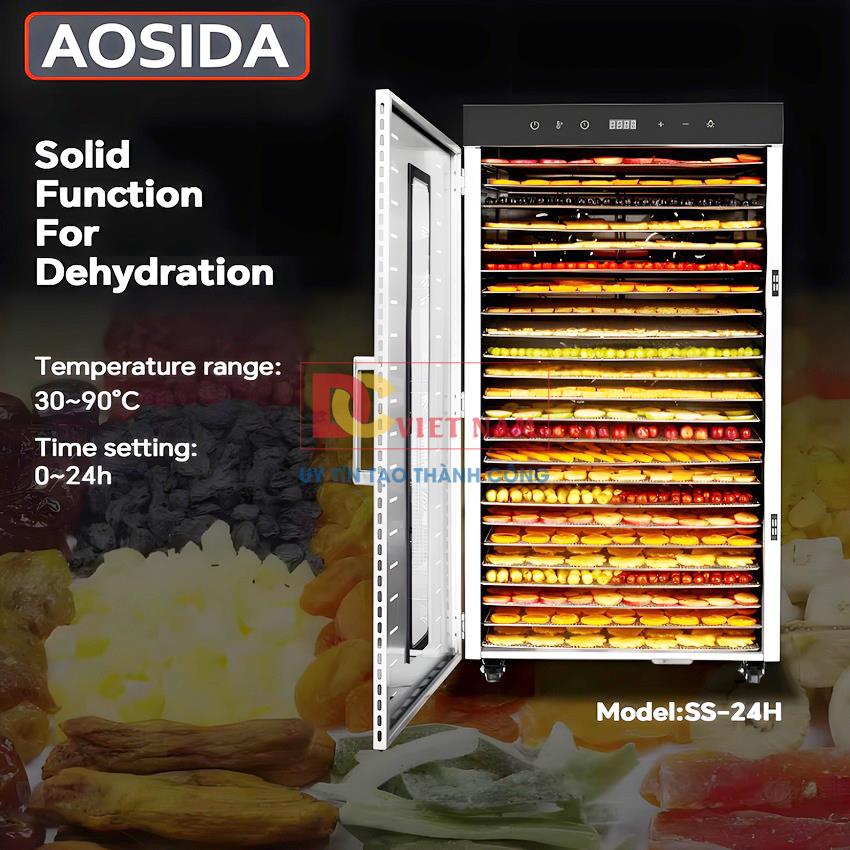 - Giới thiệu Máy sấy thực phẩm công nghiệp Aosida SS-24H dung tích 24 khay, với dung tich lớn 215 lít. Chuyên Nghiệp đang là sản phẩm được đánh giá cao cấp nhất trên thị trường máy sấy thực phẩm tại Mỹ và Châu Âu, với công nghệ sấy và tính năng hiện đại, thiết kế có độ an toàn cao.