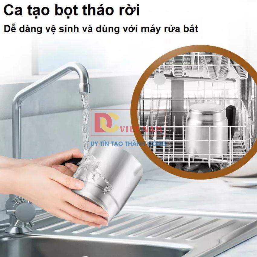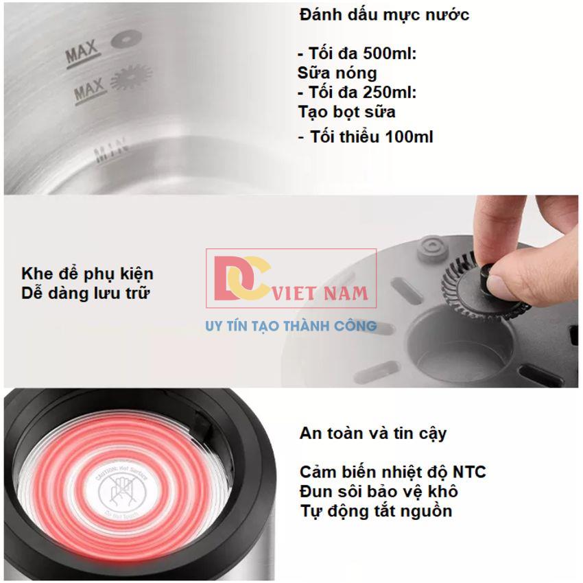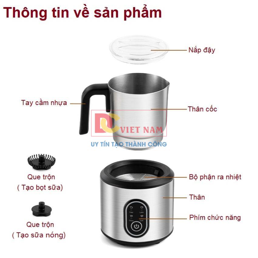 - Máy tạo bọt sữa được làm bằng inox cao cấp 304, dày dặn; siêu bền bỉ và hoàn toàn chống han gỉ. Bề mặt inox được phủ thêm lớp chống dính giúp bạn dễ dàng vệ sinh.
