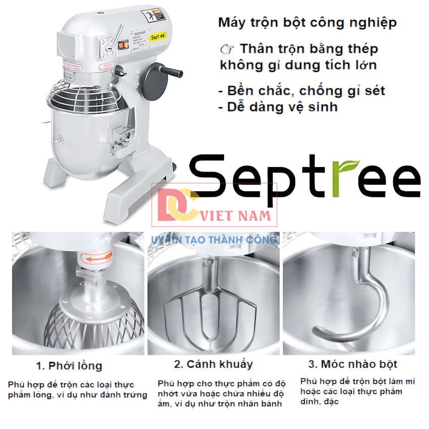 - Với người thợ làm bánh thì công đoạn trộn bột là một trong những bước đầu tiên để làm ra được những chiếc bánh ngon và đẹp mắt. Bột phải được trộn đều và mịn, và nếu cần phải trộn một lượng bột lớn thì chỉ bằng sức người rất khó trộn được mẻ bột ưng ý. Chiếc máy trộn bột Septree - B10B là một giải pháp hữu dụng cho vấn đề trên.