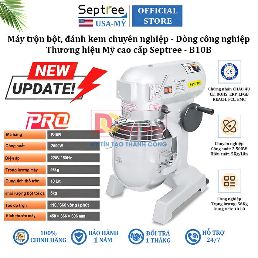 Máy trộn bột đánh trứng Septree - B10B là sản phẩm cao cấp đến từ thương hiệu Septree - thương hiệu nổi tiếng trên thế giới chuyên sản xuất sản phẩm gia dụng và thương mại cao cấp, với độ bền cao