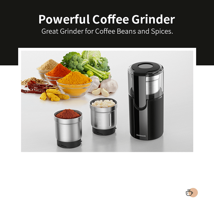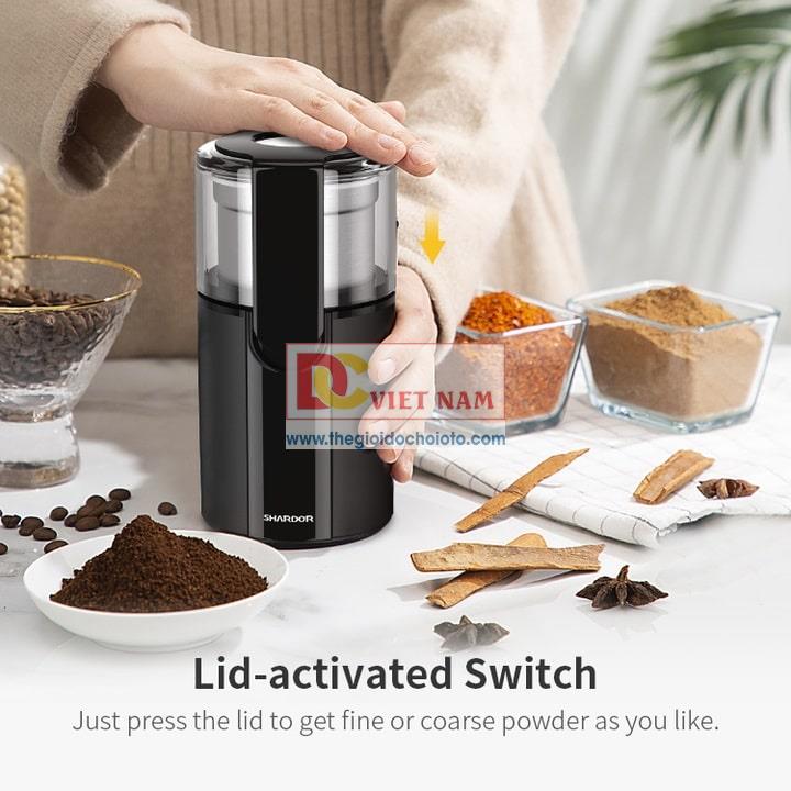 - Máy xay cà phê và gia vị Shardor CG628B được thiết kế hiện đại, nhỏ gọn và dễ dàng sử dụng, có lưỡi dao được làm bằng thép không gỉ cao cấp cùng động cơ 200W mạnh mẽ, giúp bạn xay mịn hạt cà phê một cách nhanh chóng mà vẫn đảm bảo giữ được hương vị và chất lượng của thực phẩm.