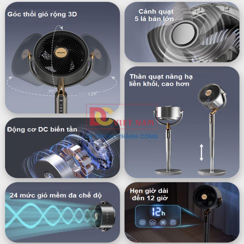 Quạt tuần hoàn không khí (Air Circulator) là thiết bị làm mát tạo luồng gió xoắn ốc mạnh mẽ, tập trung, giúp lưu thông và đối lưu không khí liên tục khắp phòng, cân bằng nhiệt độ. Thay vì thổi trực tiếp, quạt trộn đều khí nóng/lạnh, cải thiện sự thông thoáng, phù hợp dùng quanh năm, đặc biệt với điều hòa. Giới thiệu Quạt tuần hoàn không khí dạng đứng, động cơ DC biến tần cao cấp Serial 4000, Philips ACR4242CFD.
