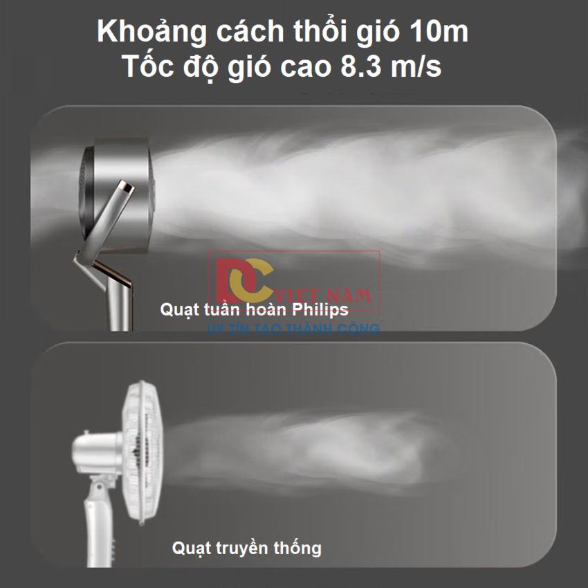 Cánh quạt góc lớn, gió mạnh nhưng êm
