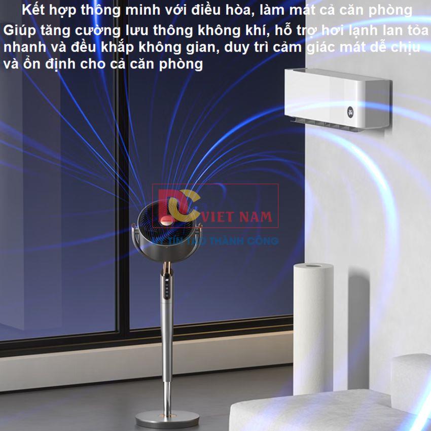 - Tác dụng sử dụng của quạt tuần hoàn không khí: Dùng chung với điều hòa, Dùng với máy sưởi, Làm thông thoáng phòng kín, Làm khô phòng, Phù hợp nhà có trẻ nhỏ/người già.